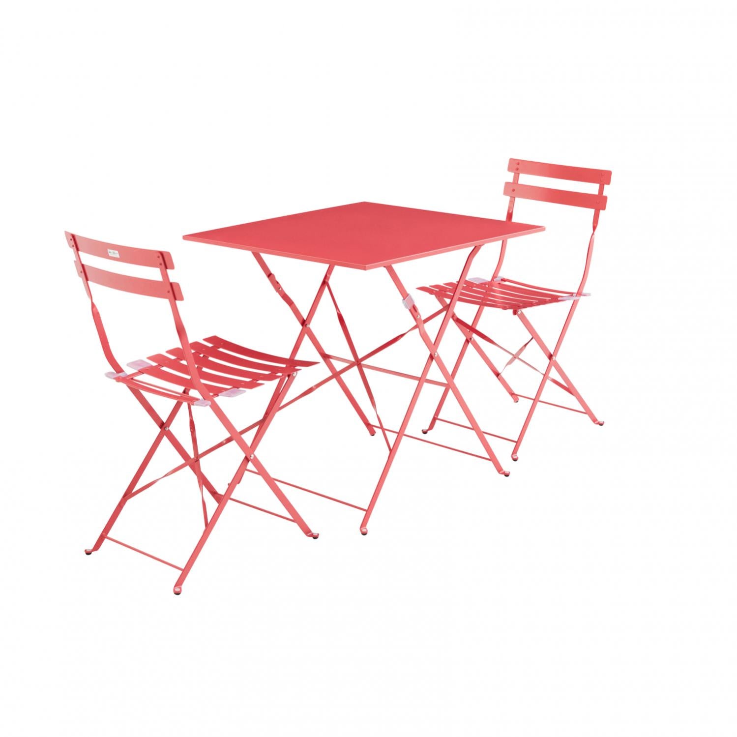 Lensemble Emilia comprend une table carre et deux chaises pliables. Robuste lger et facile. Alices Garden - Salon de jardin bistrot pliable - Emilia rectangulaire rouge framboise 110x70cm avec quatre chaises pliantes acier thermolaqu.